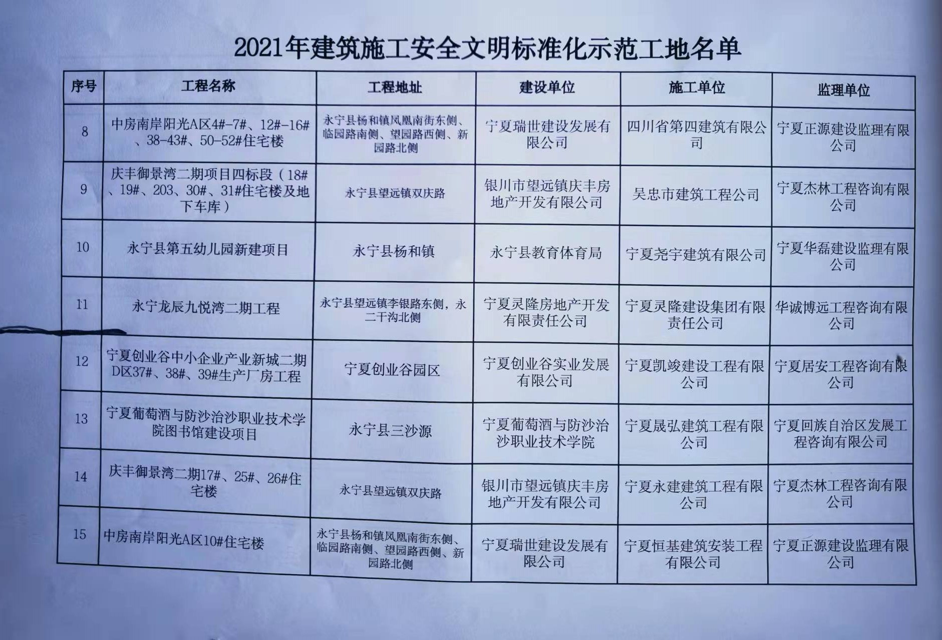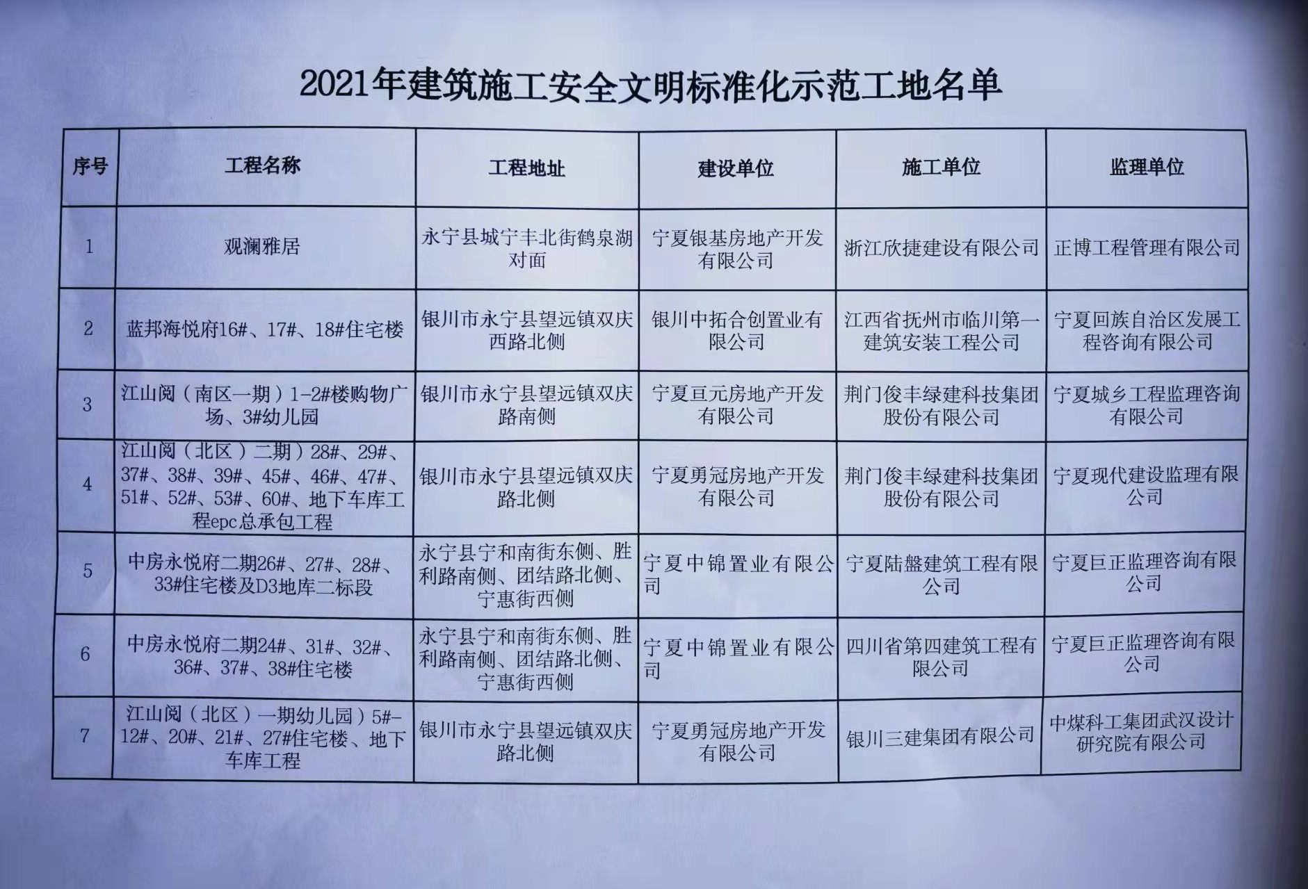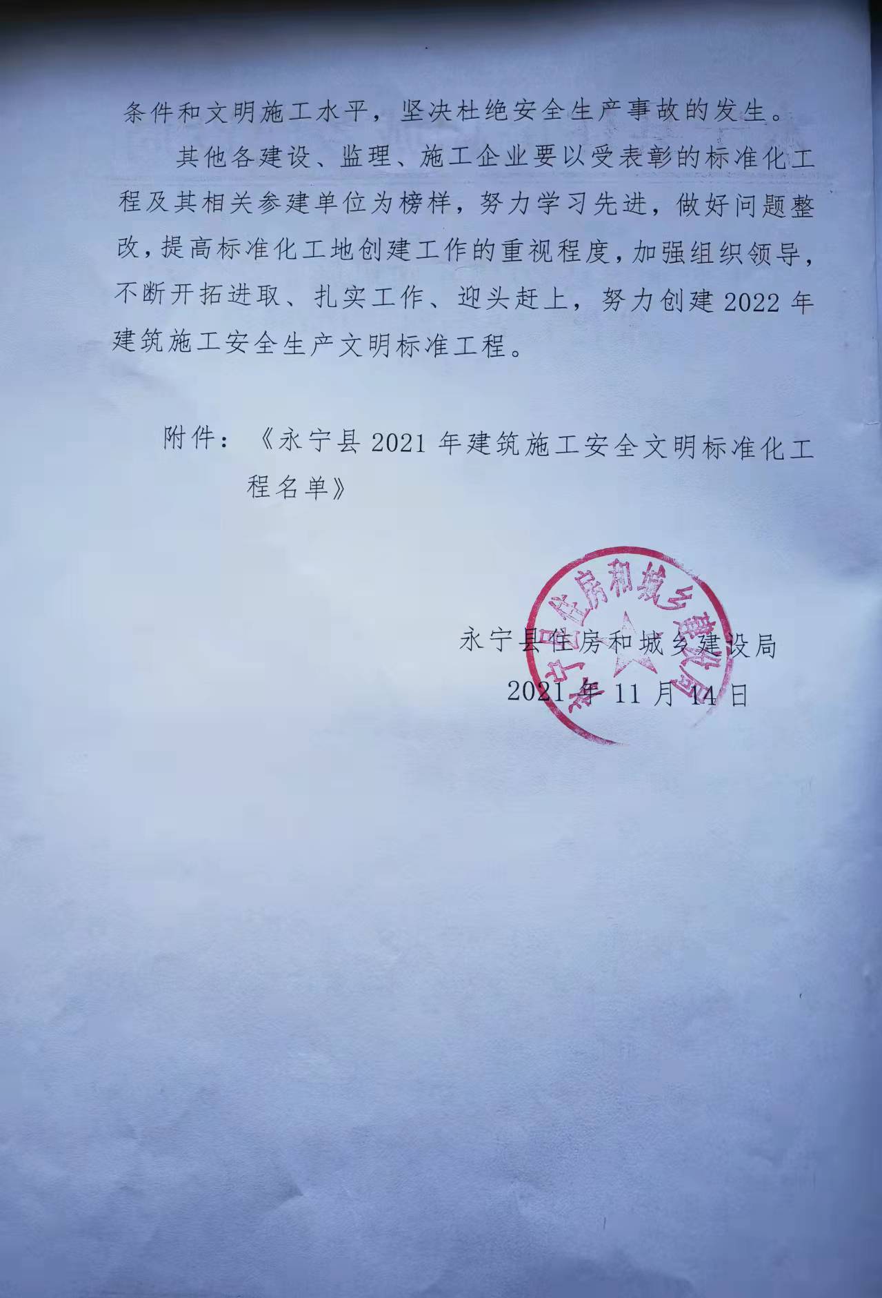永宁2021年建筑施工安全文明标准化工程考评
